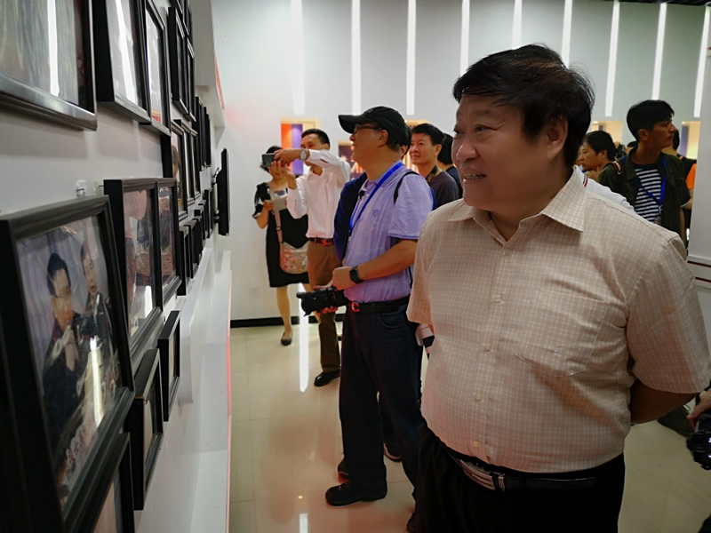 (采風(fēng)團參觀展廳照片墻)
