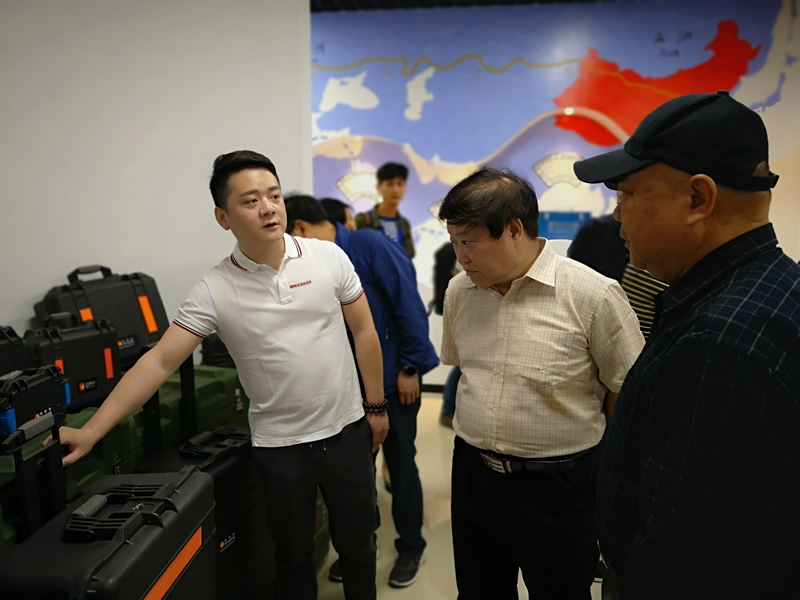 (董事長劉炎向攝影協(xié)會領(lǐng)導(dǎo)介紹公司產(chǎn)品安全防護箱)